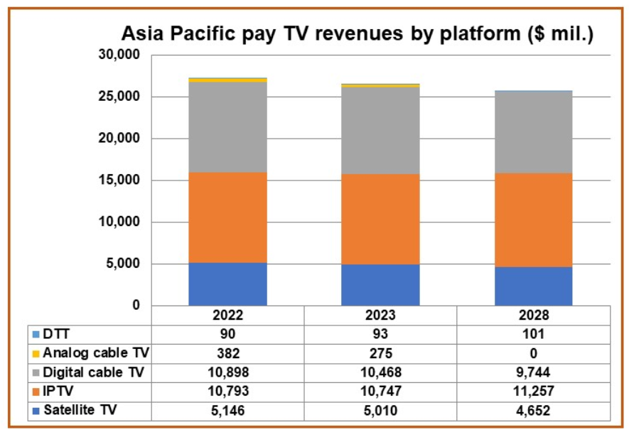 未來5年亞太付費(fèi)電視收入將下降16億美元,中國將下降3.09億美元-DVBCN