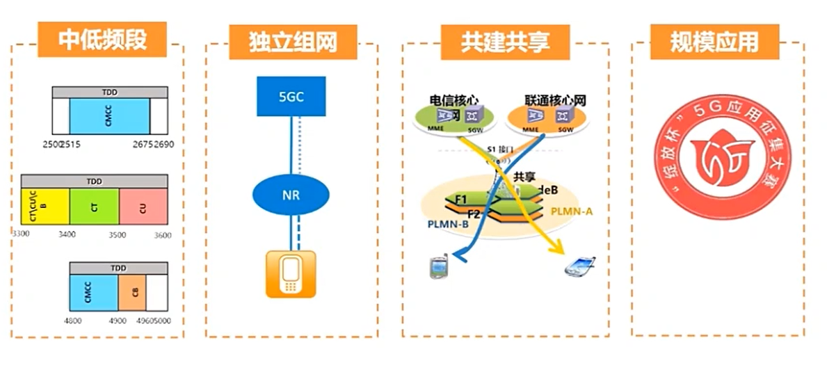 通過(guò)總結(jié)5G發(fā)展經(jīng)驗(yàn)亦能為6G的未來(lái)發(fā)展做好準(zhǔn)備,如我國(guó)大力推行中低頻段應(yīng)用于5G,各部門協(xié)調(diào)推動(dòng)頻率的合理分配,使得每家運(yùn)營(yíng)商都能有100MHz以上的優(yōu)質(zhì)頻率。在網(wǎng)絡(luò)設(shè)計(jì)上,接受了4G LTE的推廣經(jīng)驗(yàn),在5G覆蓋中直接進(jìn)行的是NR獨(dú)立組網(wǎng)(SA)。另外,運(yùn)營(yíng)商單位按照國(guó)家共建共享的要求,形成了移動(dòng)+廣電、電信+聯(lián)通的共建共享5G發(fā)展方式。我國(guó)也積極推進(jìn)5G的規(guī)模應(yīng)用,連續(xù)4年開(kāi)展了“綻放杯”5G應(yīng)用征集大賽及案例展示。