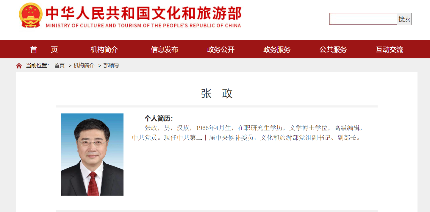 近日,國家文化和旅游部官網(wǎng)更新了部門領(lǐng)導信息。其中: