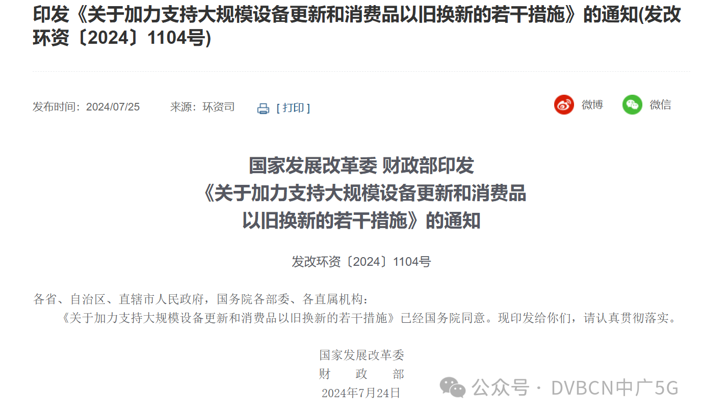 發(fā)改委、財(cái)政部印發(fā)文件:統(tǒng)籌安排3000億元國(guó)債資金加力支持電視等產(chǎn)品以舊換新-DVBCN