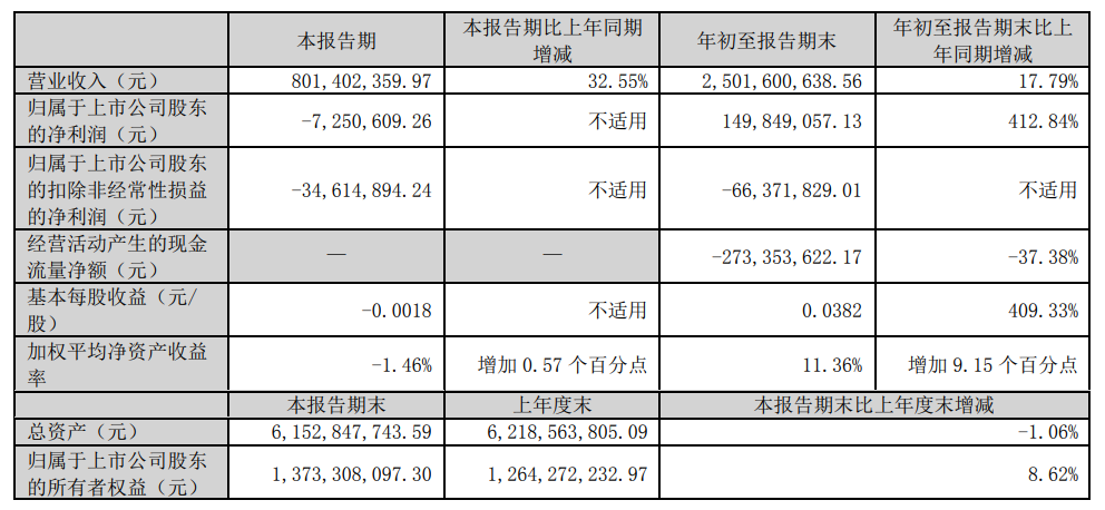 經(jīng)DVBCN的梳理,中信國安第三季度實現(xiàn)營業(yè)收入8.01億元,與上年同期比較增長了32.55%;歸屬于上市公司股東的凈利潤虧損725.06萬元,虧損同比大幅度減少。