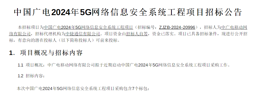 8303萬元!中廣電移動(dòng)啟動(dòng)廣電5G網(wǎng)絡(luò)信息安全系統(tǒng)工程項(xiàng)目招標(biāo)