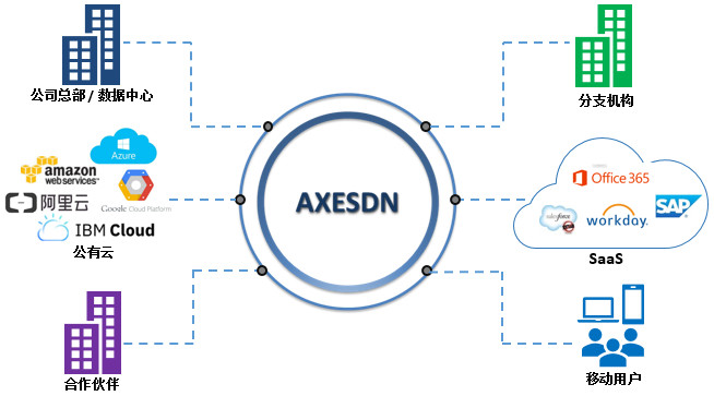 華斧科技的服務(wù)分為兩大場(chǎng)景,一個(gè)場(chǎng)景是針對(duì)企業(yè)多站點(diǎn)組網(wǎng)的“網(wǎng)絡(luò)即服務(wù)(NaaS)”,用于連接企業(yè)的股東辦公地點(diǎn)、數(shù)據(jù)中心、公有云以及 SaaS 服務(wù)。另一個(gè)場(chǎng)景針對(duì)是集中部署的應(yīng)用的“應(yīng)用加速即服務(wù)”,用于提供全球終端對(duì)集中部署的服務(wù)的穩(wěn)定高效的連接。