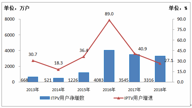 圖2-6 2013-2018年IPTV用戶發(fā)展情況