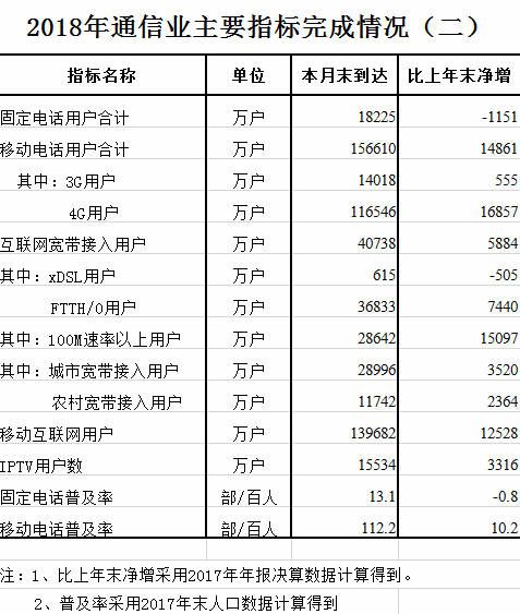 工信部運行監(jiān)測協(xié)調(diào)局發(fā)布了2018年通信業(yè)統(tǒng)計公報,2018年,我國通信業(yè)深入貫徹落實黨中央、國務(wù)院決策部署,大力推進網(wǎng)絡(luò)強國建設(shè),著力提升基礎(chǔ)設(shè)施能力,助力信息消費活力釋放。行業(yè)發(fā)展穩(wěn)中有進,對國民經(jīng)濟和社會發(fā)展支撐作用不斷增強。