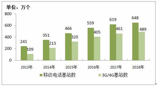 圖4-2 2013-2018年移動電話基站發(fā)展情況