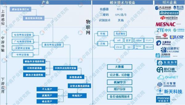 據(jù)了解,物聯(lián)網(wǎng)正在取代移動(dòng)互聯(lián)網(wǎng)成為信息產(chǎn)業(yè)的主要驅(qū)動(dòng),以物聯(lián)網(wǎng)設(shè)備為例,2017年物聯(lián)網(wǎng)設(shè)備連接數(shù)量已經(jīng)超過(guò)手機(jī)用戶數(shù)量,此外,以阿里、華為、京東為首的互聯(lián)網(wǎng)巨頭企業(yè)紛紛提出自身的物聯(lián)網(wǎng)戰(zhàn)略。值得關(guān)注的是,全球各國(guó)尤其是美國(guó)、歐盟、日韓等發(fā)達(dá)國(guó)家高度重視物聯(lián)網(wǎng)發(fā)展,積極進(jìn)行戰(zhàn)略布局,以期把握未來(lái)國(guó)際經(jīng)濟(jì)科技競(jìng)爭(zhēng)主動(dòng)權(quán)。為此中商產(chǎn)業(yè)研究院整理出物聯(lián)網(wǎng)產(chǎn)業(yè)全景圖,為廣大從業(yè)者、投資者提供參考。從產(chǎn)業(yè)來(lái)看,物聯(lián)網(wǎng)產(chǎn)業(yè)主要包括上游的感知層、中游的傳輸層和下游的應(yīng)用層。中商產(chǎn)業(yè)研究院還細(xì)心地為每層產(chǎn)業(yè)整理出其相應(yīng)的技術(shù)、設(shè)備和企業(yè)。