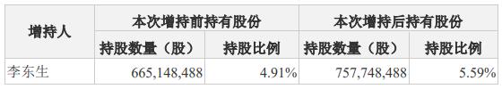 李東生及其一致行動(dòng)人合計(jì)持有本公司股份1,166,648,009股,占公司總股本的8.61%,為公司第一大股東。